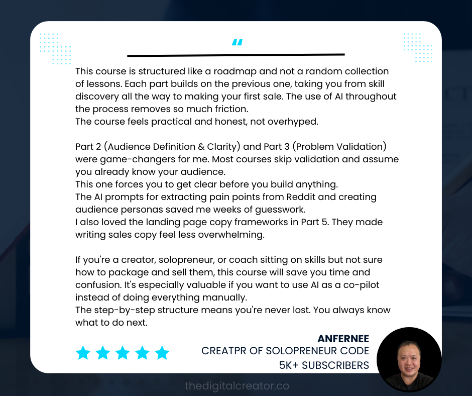 Here's what I've learned after making 700+ sales of a single product, growing to 75K followers, and helping thousands of creators build their first digital income stream: